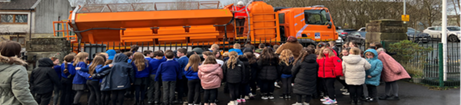 On Monday 02nd December 2024, SRP’s Liaison Officer Martin Cochrane and Gritter driver Iain Currie visited Gartcosh Primary School with a new gritter. They provided an information input to P1 to P7 pupils (267 in number) in relation to the gritter, salt and Winter Service of the trunk roads network. After viewing the Traffic Scotland Gritter tracker website with their teachers, the children of the school agreed to participate, in a ‘Name the Gritter’ competition, for the gritter that operates on the adjacent M73 motorway. The winner from the school will receiving a prize by SRP and their contractor Amey.