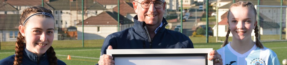 In April 2021, Scottish Road Partnership’s Operations Manager, Graham Drummond was invited to a Gartcairn Girls U/15’s training session at their football academy in Rawyards Park, Airdrie. As a show of their appreciation for the sponsorship, the girls wore their new football kit for the first time and surprised Graham with a gift, a framed football shirt showing Scottish Road Partnership’s Logo. This framed shirt now sits pride of place on Scottish Roads Partnership's Office wall in Bellshill.